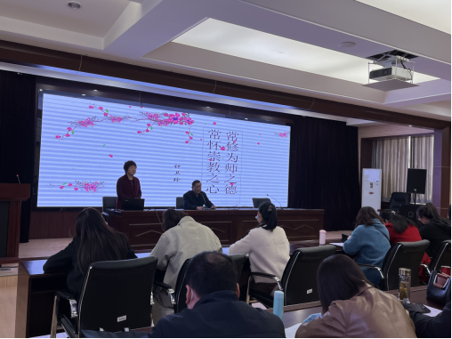 开班仪式结束后,天水市逸夫中学董事长、特级教师计卫珍为培训班做了“‘四有’好老师的使命与担当”的师德教育报告。