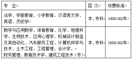 三、函授学员学费收费标准: